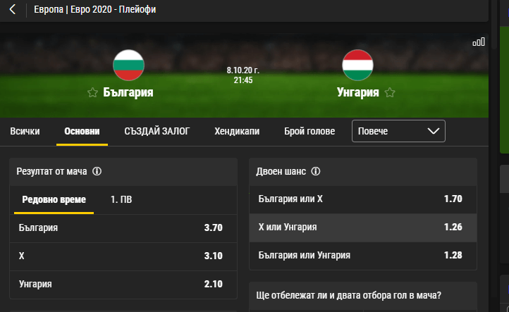 Когато изберете дадените залози, те ви се събират под формата на талон в дясната част на екрана. Единствената Ви следваща задача и да определите сумата, която ще заложите, да я напишете в правоъгълника срещу „Залог“ и да натиснете големия жълт правоъгълник, където пише „Заложи“.